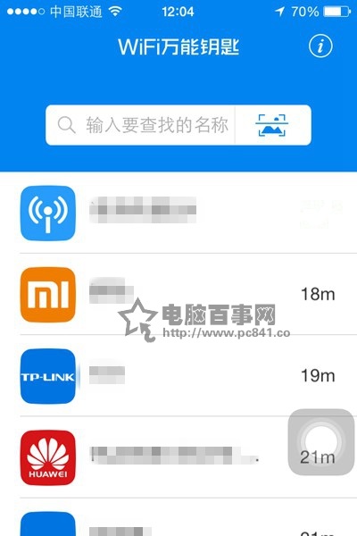 3,然後打開WiFi萬能鑰匙客戶端,進入界面需要等待幾秒鐘,是給獲取周圍附近WiFi熱點信息時間,時間的長短確定獲取的多少,如下圖所示: