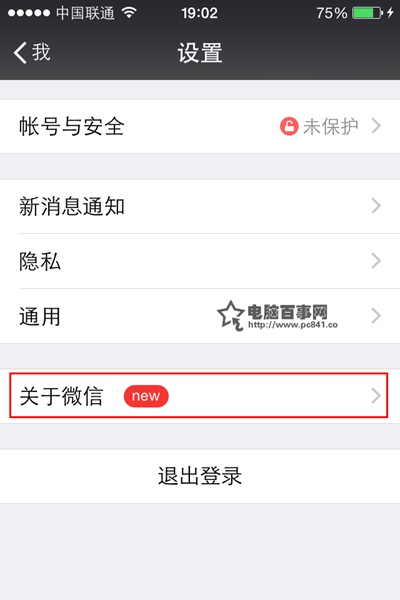4,接下來,在【設置】界面下方找到【關於微信】按鈕,點擊一下進入到【關於微信】界面,如下圖所示: