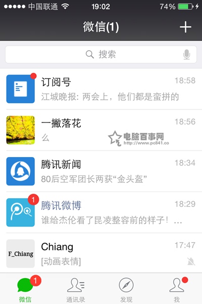 1,在手機上打開最新版微信,直接進入到微信首頁界面,如下圖所示: