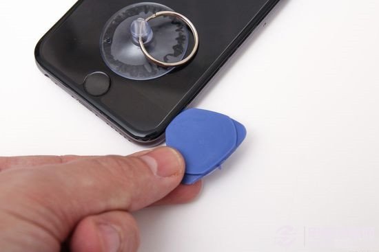 第5步:使用撬片撬出屏幕。從主頁鍵開始繞著屏幕一點一點向上撬。