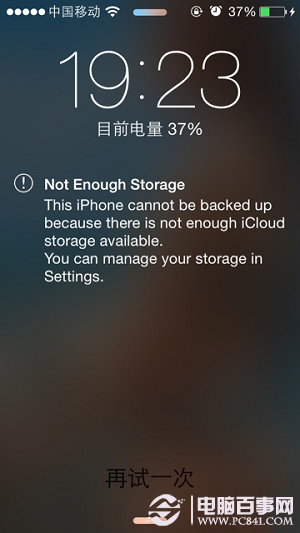 解決方法:進入設置--iCloud--儲存空間--管理存儲空間,刪除沒必要的備份。