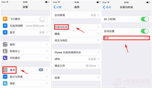 1.進入【設置】——【通用】——【日期與時間】——【時區】設置成【北京】。(如下圖)