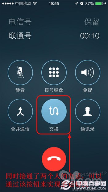 在iOS8中,當正在與一個聯系人通話時,另一個聯系人打進電話來是可以同時通話的,而且也可以在與一個聯系人通話時再撥通另一個人的電話,實現三方同時通話