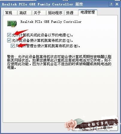 三,開啟wake on lan和電源管理選項。另外電腦上網卡要設置手動獲取ip,至此電腦設置完成。