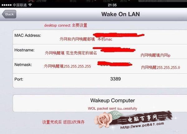 全部設置完成後關掉電腦,打開desktop,進入你設置好的電腦,點setting,wake on lan。點wakeup,computer ready。顯示wol,packet sent successfully,代表發送成功。