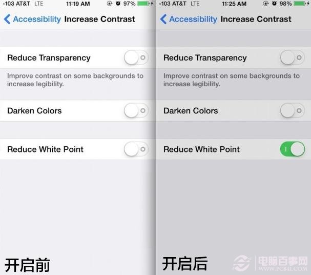 第四步:開啟“減少白點”就可以。這樣就不需要越獄安裝一些插件來實現這個功能。而且因為是蘋果自己開發的,和iOS應用是100%兼容。