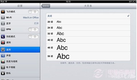 如果你嫌系統默認的字體太小,不想每次查看郵件時都進行字體放大操作,那麼你可以選擇一個一勞永逸的方法,即在“設置-通用-輔助功能-大文本”中選擇大號的字體。該設置僅在以下應用中生效:郵件(Mail),通訊錄(Contracts),日歷(Calendars),信息(Messages)和備忘錄(Notes)。