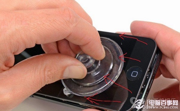 2、吸盤打開前屏幕 (從底部開始打開,逐漸往頂部掀開的過程中要慢點,因為屏幕頂部和機器內部主板是有排線的)