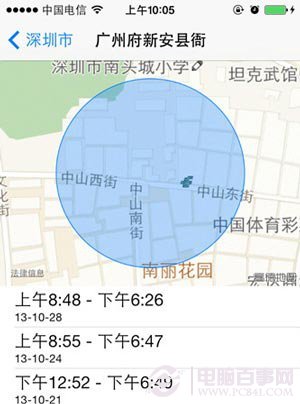 同時,通過歷史記錄的查閱,筆者發現個人行蹤最早被記錄的時間是9月10號。這也說明了該功能並非近日發布的iOS 7.0.3新增的功能,而是iOS7發布當天就所具備的。