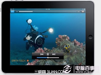 iPad的高分辨率顯示屏是采用Multi-Touch技術,配合無框玻璃屏,讓你有最佳的控制選擇,包括以劇照行列方式浏覽你的影片,找到喜歡的影片後輕點一下便開始播放,把iPad橫放後可以采用寬屏模式觀賞,用手指輕點兩下屏幕就可以在寬屏和全屏幕顯示之間轉換,也可以拖動進度條快速浏覽影片的某一個章節。