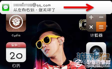 在你運行iOS7的iPhone/iPad/iPod touch上,出現通知橫幅時,橫幅會顯示黑色的背景條以及白色的文字,你可以通過輕點通知橫幅來快速切換到該程序去處理通知,但是如果你想消除這個通知,要做的僅僅是向上滑動一下這個通知欄,它便消失了,無需任何設置,也無需安裝任何第三方工具。