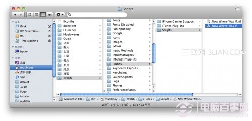 以後再用腳本打開iTunes,音樂會直接響起──就是你上次退出時候聽到的那首歌(唯一的遺憾是歌曲是從頭播放的,而非從你退出的位置開始繼續播放,如果你聽的是一段長達2小時的現場錄音的話……)。一定要記住,打開iTunes的時候要用腳本啟動,退出iTunes的時候也要用腳本關閉,否則就無效了。 其實我更推薦大家把這個腳本放到“資源庫\iTunes\Scripts”目錄下(也許你找不到Scripts目錄,那就手動建立一個):