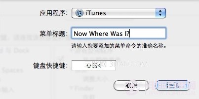 以後你就不必再找那個腳本去雙擊來退出iTunes了,點擊這個菜單即可。聰明的你一定想到了,既然這個腳本進入到菜單裡了,那麼顯然就可以用快捷鍵來啟用之了: