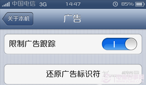 5、把“設置-通用-關於本機-廣告中的限制廣告跟蹤”打開。