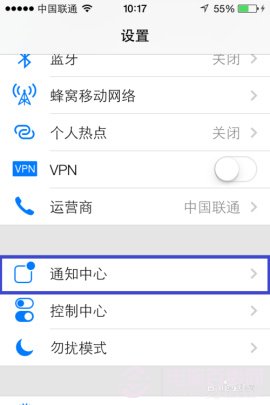 在設置列表中找到“通知中心”選項,點擊進入,如圖所示:
