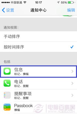 在通知中心中找到“信息”選項,點擊進入,如圖所示: