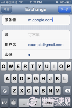 然後先填上我們的Gmail賬號的密碼,點下一步,再在服務器那一項填上m.google.com,再在下面的用戶名裡填上我們的Gmail用戶名,再點擊下一步,會提示正在驗證,驗證完就算添加完畢了。