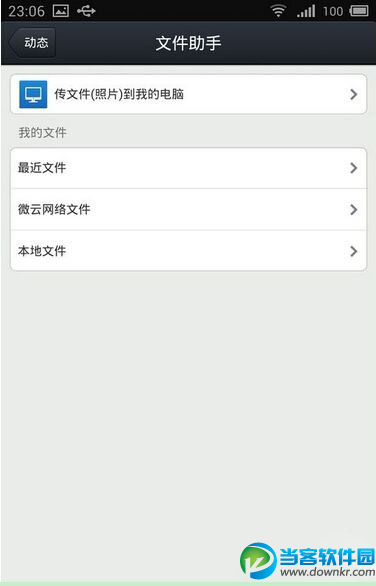 3、我們可以看到最近文件,微雲上的文件以及本地文件,不過我們要點擊的是“傳文件(照片)到我的電腦”。
