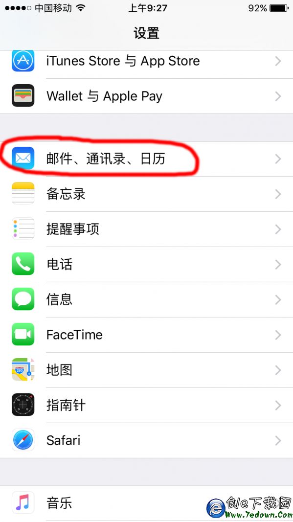 打開iphone 設置----郵件、通訊錄、日志