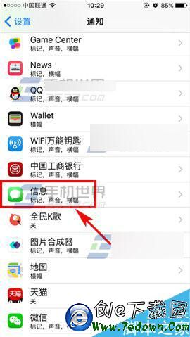 1)首先我們先打開【設置】,然後找到【通知】,打開後我們再找到【信息】。(如下圖)