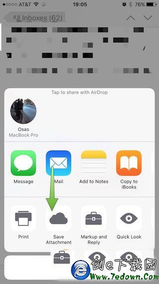 5. 長按附件下載框,直到彈出分享窗口,並選擇“存儲附件”。