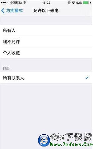 2.點擊【允許以下來電】,為iPhone設置允許打進來的聯系人。