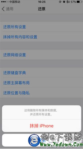 4.輸入密碼後,點擊【抹掉iPhone】。即可還原所有設置與內容