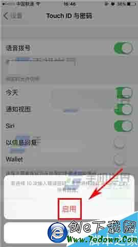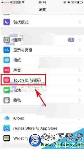 1)首先我們先打開【設置】,然後找到【Touch ID】,打開後輸入密碼點擊右上角的【完成】。(如下圖)
