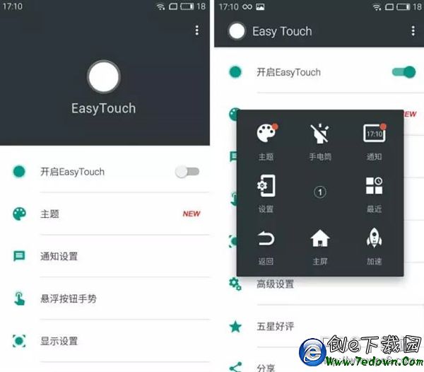 相較於iPhone的小圓點,Android的Easy Touch非常靈活。懸浮面板、按鈕都可以自定義,甚至不需要root就可以把懸浮按鈕設置為返回鍵。除此之外,還兼有非常具Android特色的熱門功能——一鍵清理緩存,加速手機運行速度。