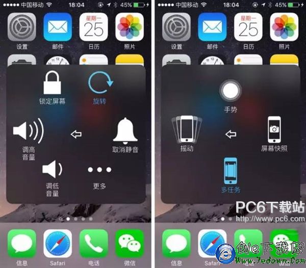 增加“多任務”“屏幕快照”兩個常用功能,非iPhone 6s和iPhone 6s Plus的用戶建議增添“靜音”。