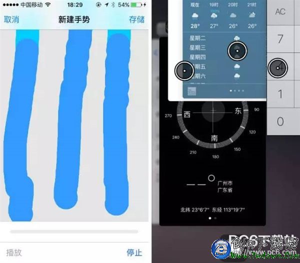 iPhone中有很多大家都熟悉的手勢,比如對角線拉動可以縮放圖片/網頁。這個手勢需要兩個手指進行,不過利用AssistiveTouch的手勢設置就能實現“一指控”——用一根手勢實現多個手指輕掃或拖動的效果。