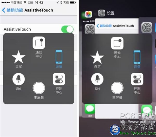 用iPhone 6s或iPhone 6s Plus的朋友可以通過3D Touch來使用AssistiveTouch,快速完成一些日常操作,相當於額外增設了一個快捷鍵。