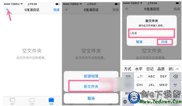 5、長按左上角“+”,出現之前看到的“新增相薄”和“新文件夾”,還是選擇“新文件夾”並輸入名稱: