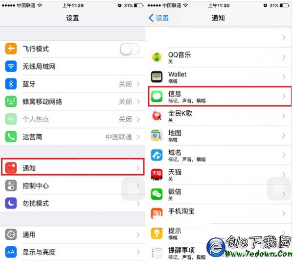 1、首先進入iPhone的「設置」,然後依次進入「通知」-> 「信息」設置,如圖。