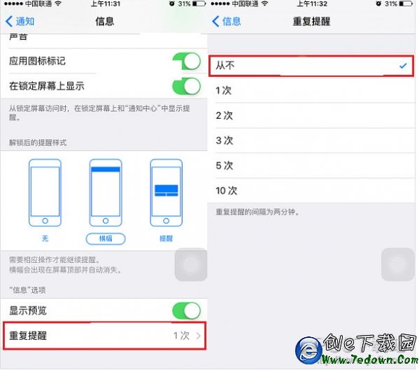 想要關閉iPhone信息重復提醒的朋友,快去試試吧,雖然是一個小功能,但很實用。尤其是對一些手機不離手的朋友,一般短信提醒一聲就知道了,無需重復提醒。