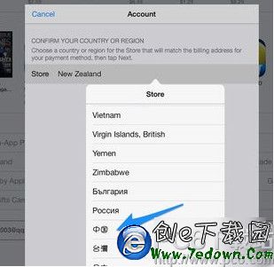 4、在 Store 應用商店一欄,我這裡以切換到中國為例,點擊選擇下拉列表中的“中國”選項