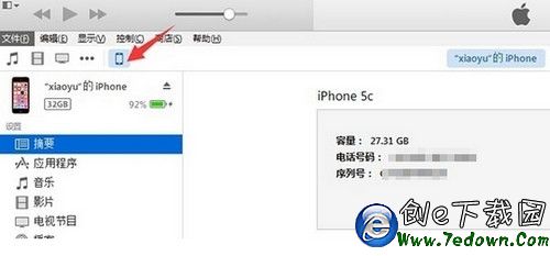2、將 itunes 更新到最新版,打開 itunes 並連接設備,點擊左上角圖標進入設備摘要頁。
