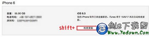 4、然後按住鍵盤上的 Shift(Option),同時鼠標點擊 iTunes 界面的【檢查更新】按鈕,再選擇對應版本的 iOS9.3.2 beta3 固件進行升級。