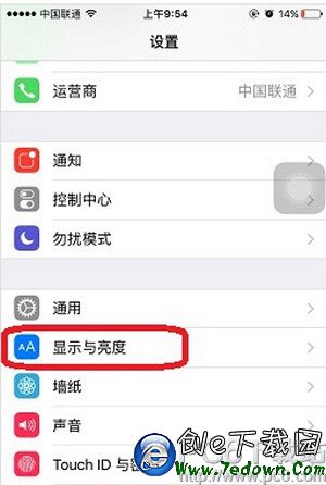 1.打開設置,下拉點擊“顯示與亮度”,如圖: