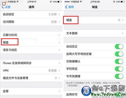 第二步:然後在通用設置界面中,點擊進入【鍵盤】設置,之後再次點擊頂部的【鍵盤】