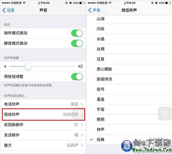 第三步:這裡面的鈴聲很多,另外點擊底部的「經典」還可以將一些經典鈴聲設置為短信鈴聲,如圖。