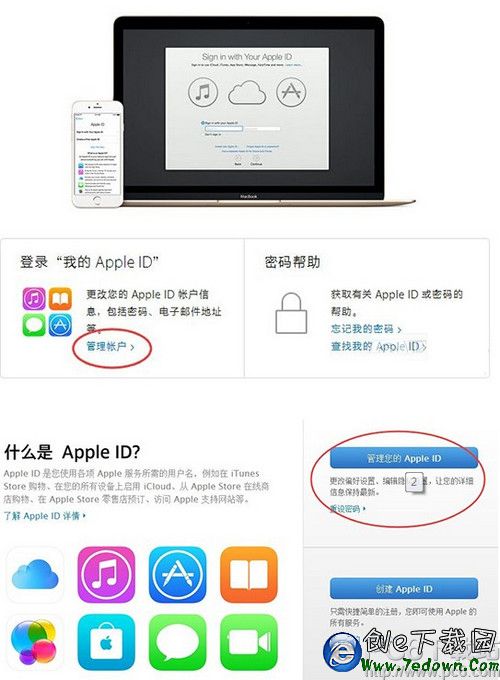 2. 在選擇 Apple ID 之後跳轉的頁面上點擊“管理賬戶”>“管理您的 Apple ID”,輸入 Apple ID 和密碼之後將進入 Apple ID 管理界面。
