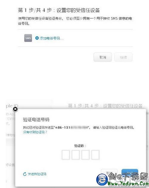 5. 添加手機號碼之後,在彈出的驗證框中輸入收到的短信驗證碼。
