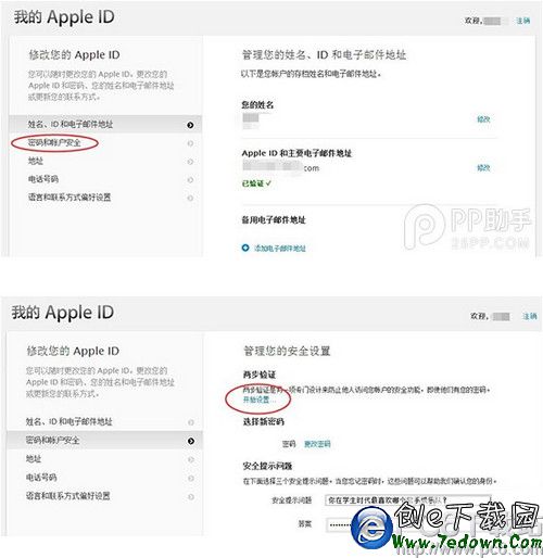 3. 點擊左側的“密碼和賬戶安全”選項,並回答此前設置的安全提示問題,開始兩步驗證的設置。