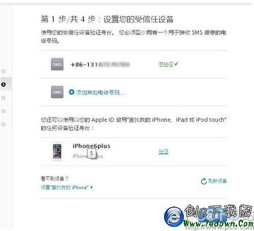 6. 手機號碼驗證完畢之後,我們需要驗證自己的蘋果設備,鋒友 mrtyzq 驗證的是自己的 iPhone6Plus,這一步,我們仍然需要輸入驗證碼。