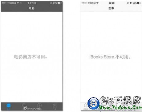 目前,打開iBooks、iTunes電影兩個應用,都顯示“不可用”狀態,也就是說,在國內已經徹底無法訪問。Apple Music尚可使用。