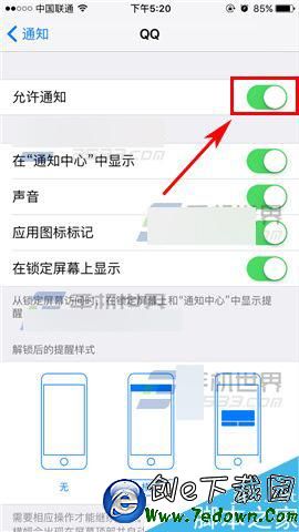 2)打開後我們再點擊自己需要設置的應用,最後再把【允許通知】那欄右邊的橢圓往右拉打開即可。(如下圖)