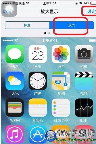 3.選擇“放大”,然後點擊右上角的設定即可,如圖: