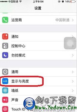 1.首先打開你的手機設置,點擊“顯示與亮度”,如圖: