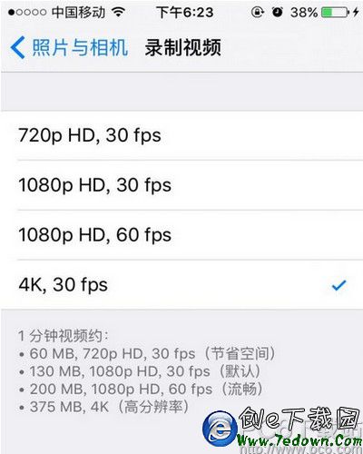 iPhone SE 支持 4K 拍攝,iPhone 5s 則不支持,所以可以進入設置——照片與相機——錄制視頻,查看是否有 4K 視頻選項。